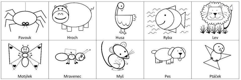 - Pozoruje, jak z jednoduchých tvarů vzniká celý obrázek – a zároveň vnímá, že každé slovo má svůj tvar a význam.